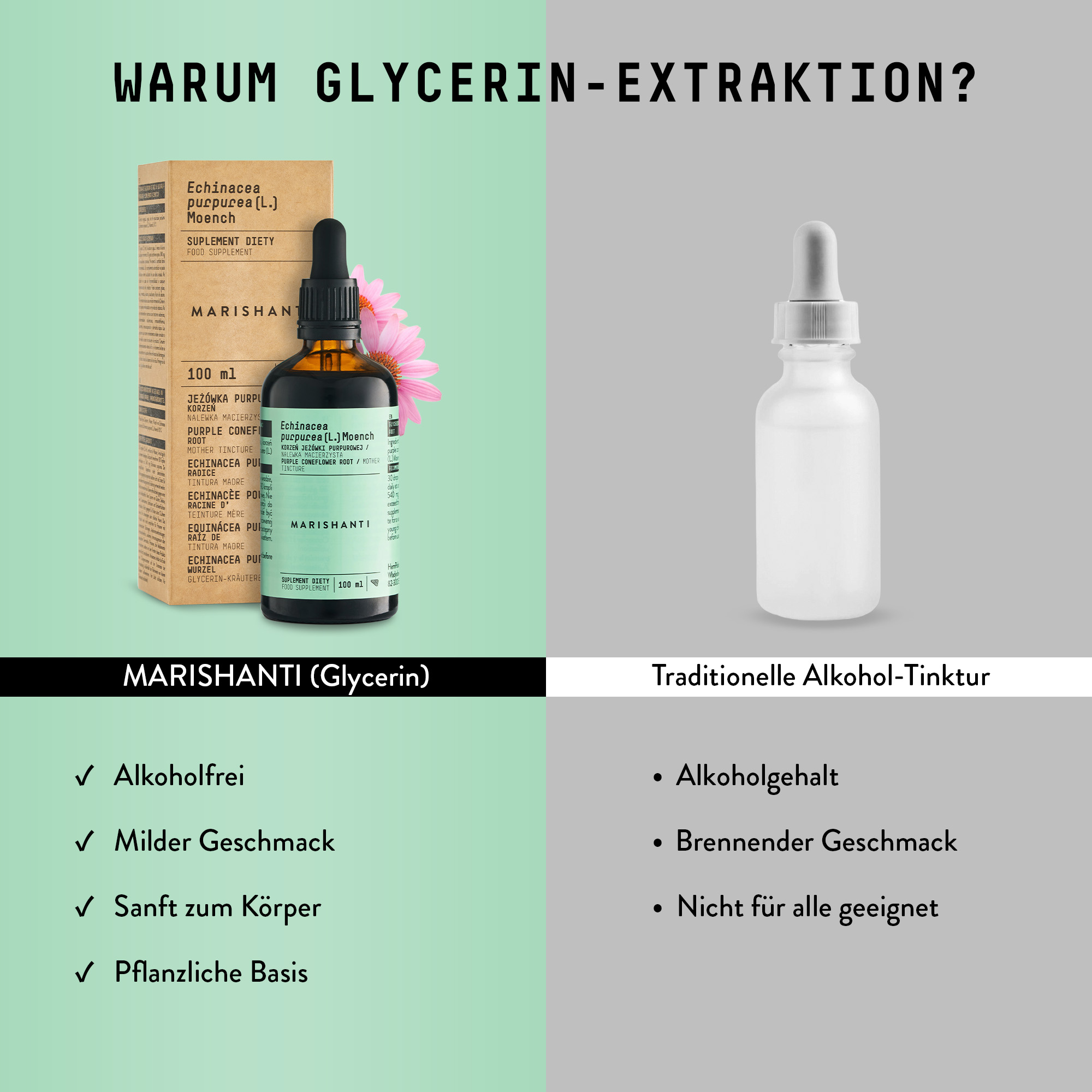 Pflanzliches Glycerin, Wasser, Purpur-Sonnenhutwurzel (Echinacea purpurea [L.] Moench) 10%