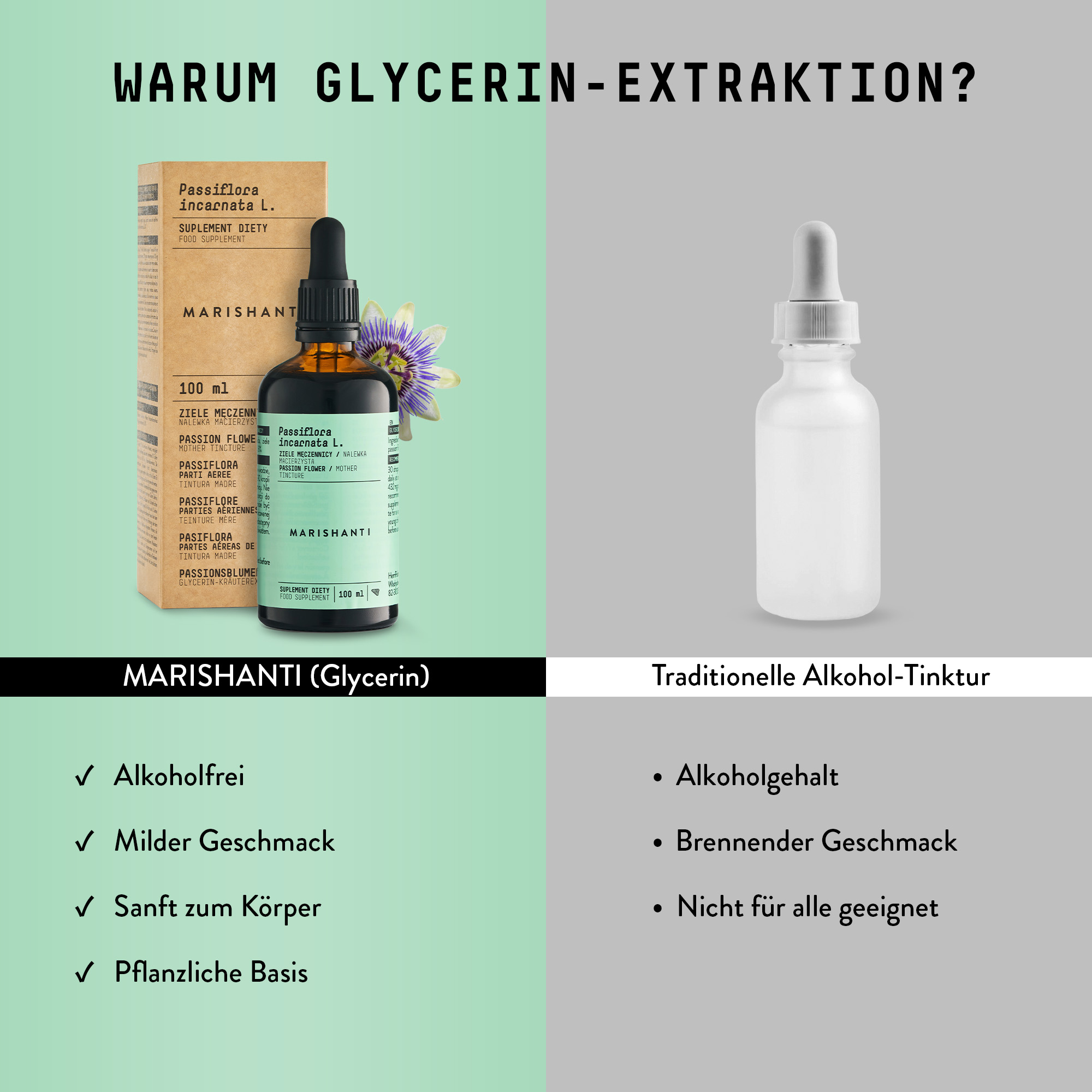 Der Marishanti Passionsblume Extrakt macht diese Tradition in alkoholfreier Form zugänglich – als Glycerintinktur, die in Polen hergestellt wird und sich einfach in ruhige Abendstunden integrieren lässt.