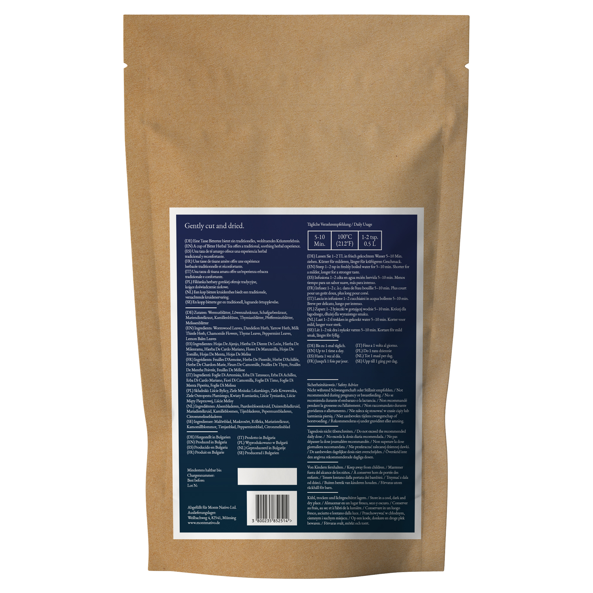 Die acht Kräuter dieser Mischung stammen aus kontrolliertem Anbau in Bulgarien und werden behutsam getrocknet, um ihre natürliche Essenz zu bewahren.