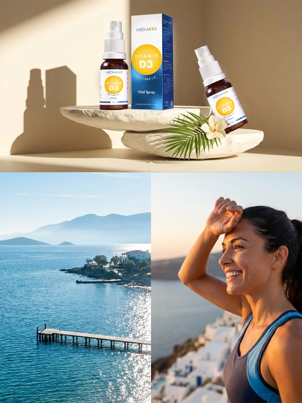 Unser Mediakos Vitamin D3 Vital Spray liefert Vitamin D3 in Form von Cholecalciferol – der Form, die Dein Körper auch über die Haut bei Sonneneinstrahlung selbst bildet.
