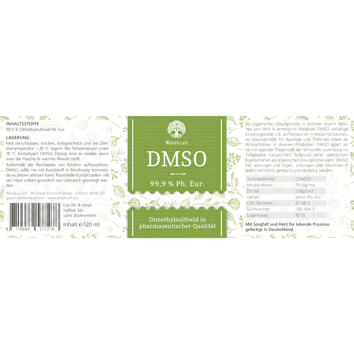 Ein paar praktische Tipps: DMSO hat einen Schmelzpunkt von etwa 18°C. Wird es bei kühleren Temperaturen fest, ist das völlig normal – einfach bei Zimmertemperatur stehen lassen, und es wird wieder flüssig. Da DMSO Feuchtigkeit aus der Luft anzieht, solltest Du die Flasche nach jedem Gebrauch sofort gut verschließen. Die Abfüllung im Braunglas mit teflonbeschichtetem Deckel schützt optimal vor Licht und verhindert Reaktionen mit Kunststoffen.